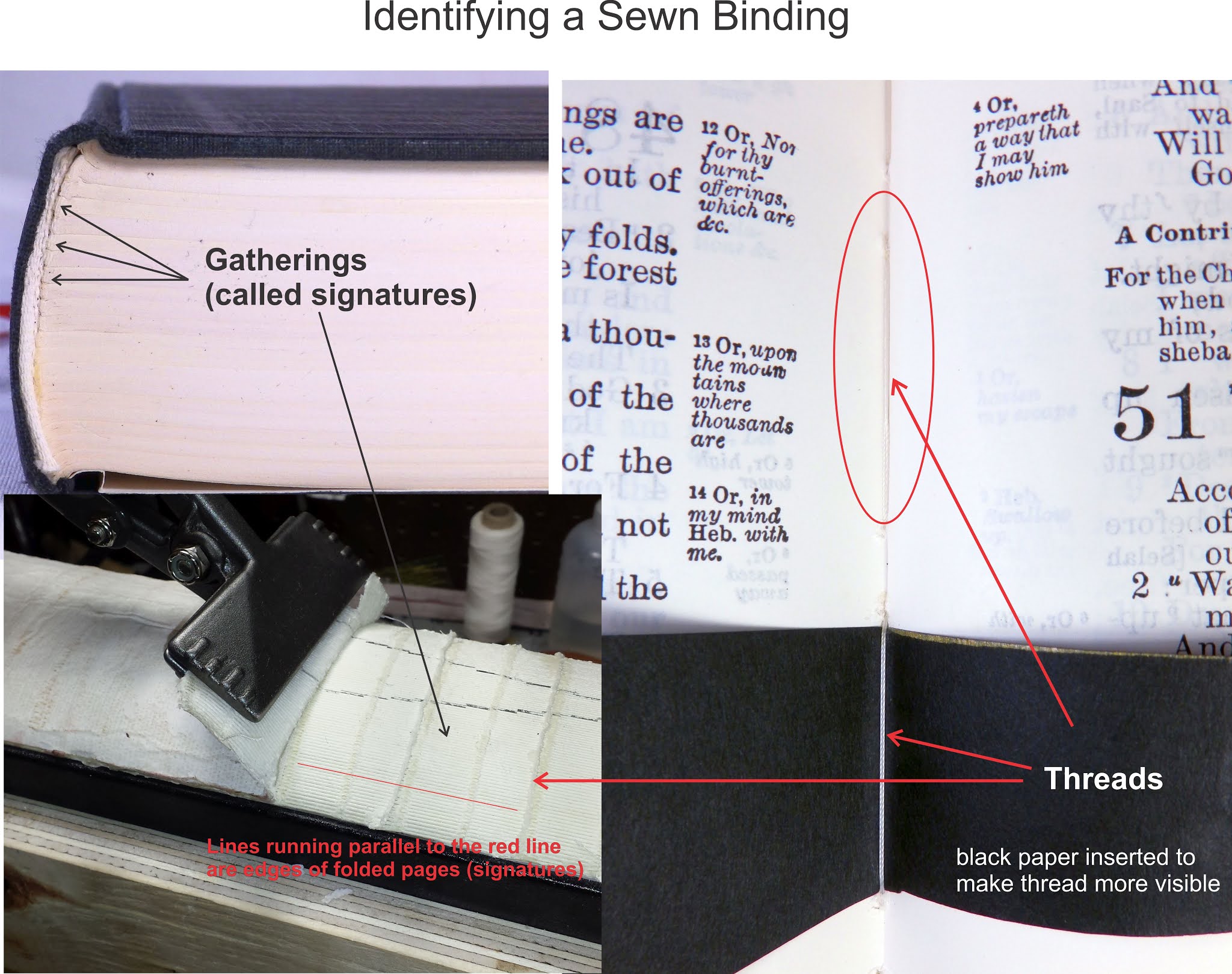 One important factor in rebinding is knowing if you have a sewn binding. The popular term is “glued” versus sewn binding. However, most, if not all, modern Bible bindings are glued. Even if it is a sewn binding, it is still glued too. That is why I use “glue-only” for those that are not sewn.